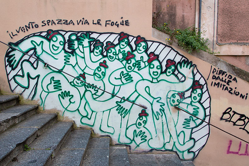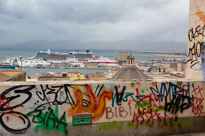 Visits to many of these port towns in Italy remind us that ‘graffiti’ is an Italian word. It seems that every spot, every corner is tagged with spray paint. There also is not much evidence that anybody is trying to stop it, no places sprayed over with tan or gray paint to hide the artwork. An investment in a spray paint producing company seems like a good idea. However, I wish to stress that Cagliari was a very pleasant, attractive town to explore on our own, no ship excursion. Preparing for the next phase of our European adventure, I bought our Italian phone here and a SIM card. The theory is that this will be cheaper than using our existing phones and paying Verizon for the additional usage abroad. So we got a new phone and new phone number and we should be ready to call our future landlords in Europe to arrange meeting places.