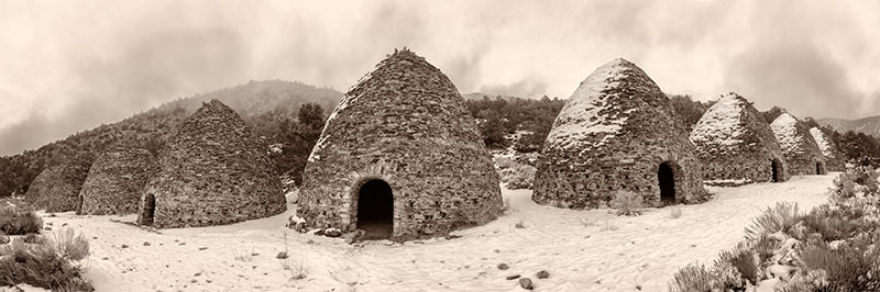For this trip my goal was to visit the lesser known sections of the park, like the charcoal kilns which once made fuel for smelting in the local mines. Our arrival at these kilns coincided with a rare snowstorm. Some of the photos in this posting of the more well known sites such as Zabrisky Point and the Mesquite Sands Dunes were taken on previous trips, and are included here to give a better overall view of the beauty of Death Valley National Park.