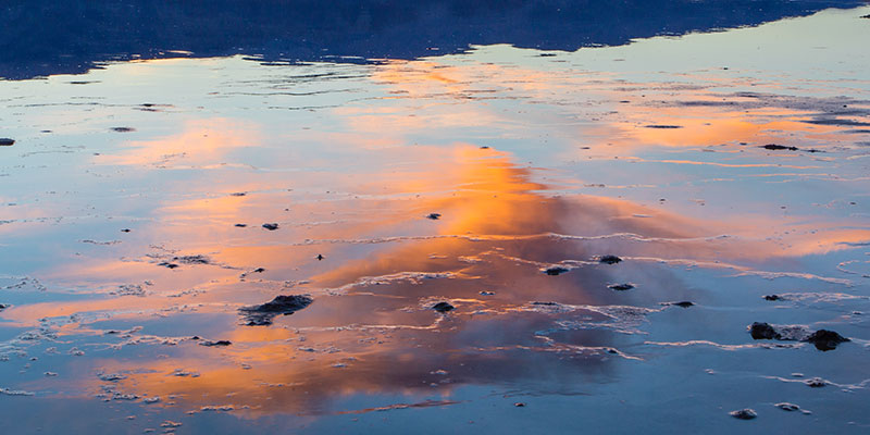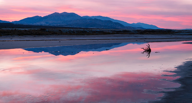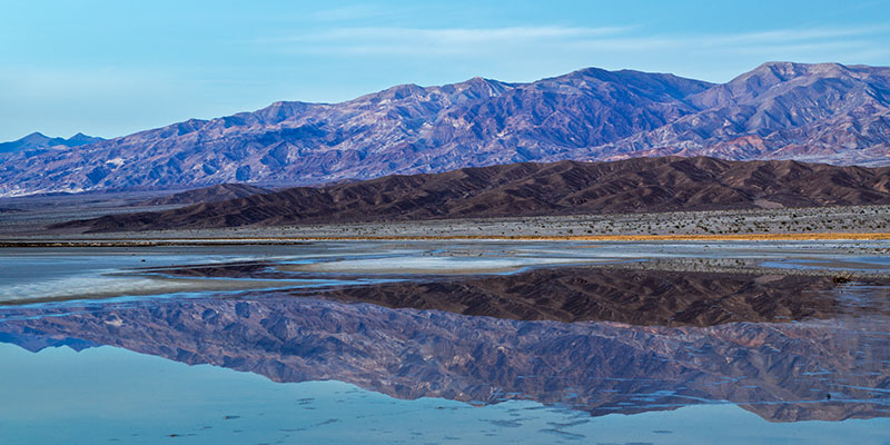 This was my fourth or fifth trip into Death Valley. It is understandable how someone might quickly drive through the main roads of this national park and not see the beauty hidden in this barren land. The sights worth seeing in Death Valley often require one to get up for sunrise or wait until sunset. On the plus side, you also are not going to get the Yosemite type traffic jams. At midday much of this land looks like a xero landscaped yard in an upscale part of Arizona, with not a single green sprig to be seen and the hard ground covered with smooth tumbled rocks. Yet within this arid desert one can always find some water and, hopefully, some beautiful sunsets and memorable reflections.