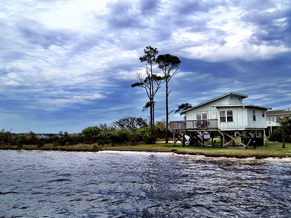 We are working our way to Florida where we will board a cruise ship for Italy. However, along the way we need to get our taxes done. This requires us to be in one spot for a while to receive our mail package from Alternative Resources. (See my Details / Travel Links page in the Menu) We rented this cute one bedroom house on the water based on the suggestion of someone we met 1,110 miles to the west, in Tucumcari, NM. He said it is possible to cast your fishing line into the back bay waters from the front deck. While not fishing on this trip, we found that to be true. Instead, it only provided a nice view to enjoy while struggling with our way-too-complex tax regulations.