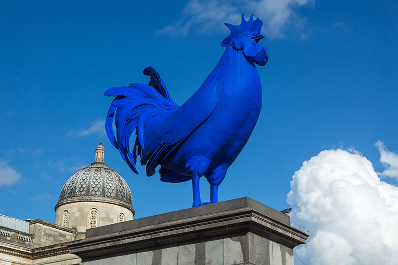 4) Some random modern art in Trafalgar Square, brilliant blue chicken.