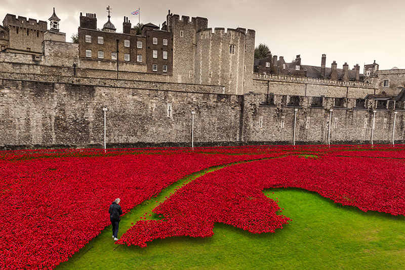 3) Poppies at the Tower of London placed to pay tribute to the British soldiers who died in WWI.