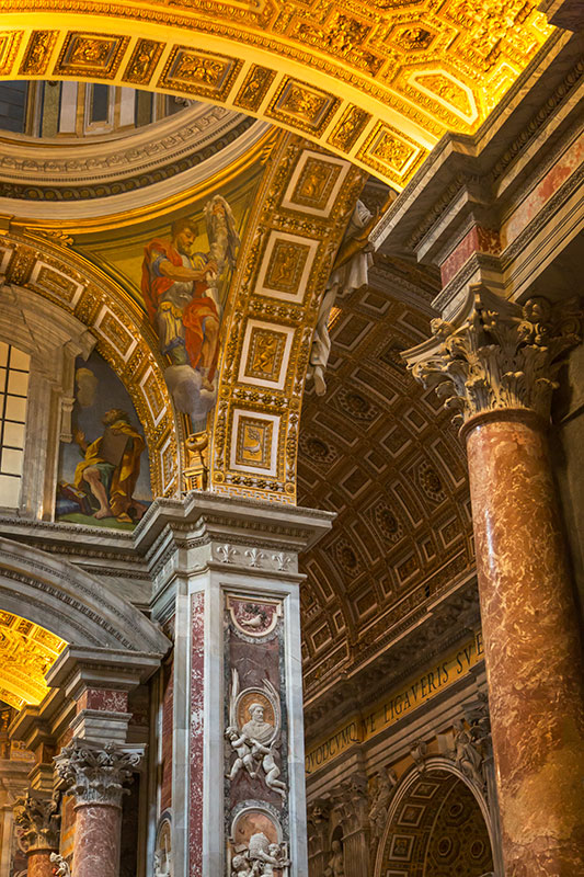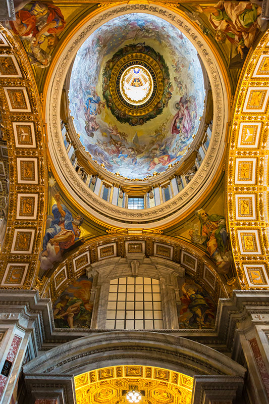 I will leave to others to try and describe the immensity, beauty and grandeur of St. Peter’s Basilica and all the Vatican offers. It is simply over the top in every aspect. The guide told us that they did what they could to make it appear smaller than it is, as the size was unnerving to many who visited. There are arches and domes of differing sizes that intersect, resulting in incredibly complex architectural lines. One of the photos in the Gallery is named ‘Complexity’ for this reason. On display is Michelangelo’s beautiful Pieta, now behind glass every since a crazy man chipped off part of Mary’s nose…. Among the crowd are tourists busily snapping one photo after another, wandering around with heads always strained toward the ceiling, as well as nuns quietly experiencing the meaning of the place in silence. There is likely no more beautiful and ornate building on earth. However, I am no expert in this area as I have yet to see the Taj Mahal, Palace of Versailles and many other places, so much to see….